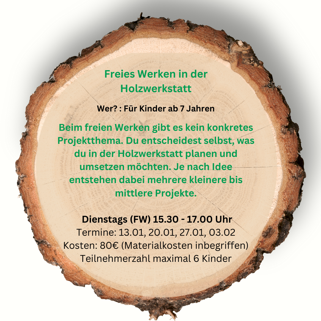 Holz- und Kreativwerkstatt für Kinder ab 6 Jahren ohne Eltern